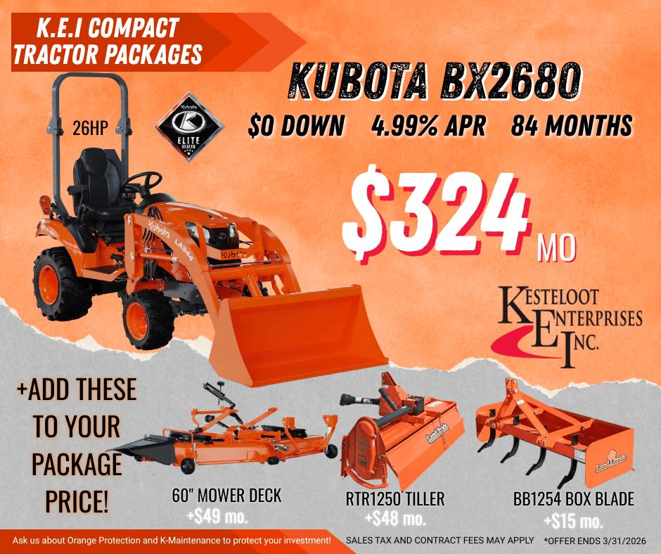 - Kubota BX2680 26HP Compact Tractor 4WD