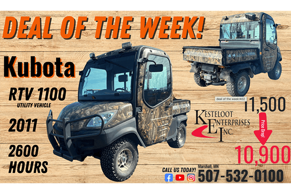 KEI is dropping the price on this Kubota RTV1100C with an enclosed cab!!! Take a look at this great working machine with many features to fit your needs! The possibilities stack on top of each other with this utility vehicle as you ride in an enclosed cab including heat, air conditioning, and a radio! This UTV has a hydraulic dump bed that makes it simple and convenient for your projects! This is a diesel model RTV with 4-wheel drive and hydro 3-range transmission.